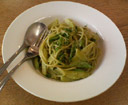 パスタはパジルペーストのソースにまほろばの自然農園で採れたいも、いんげんが入っていてとても美味でした〜。