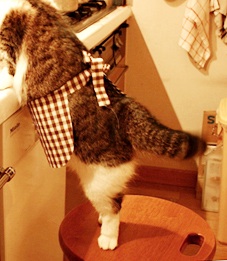 ブログの中に、エプロン姿の猫村さんを思わせる1枚があって、チャームポイントの不思議顔が写ってないのですが、かわいかったので・・・。
