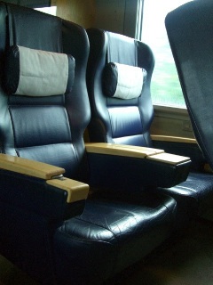 夏休み3連休で久々に夏の帰郷をして来ました。思い切って、人生初のグリーン車を予約してウキウキのグリーン車体験をしました。 まず、驚いたのが、この革張りのシートです!!一両に9席しかないんです。なんて贅沢☆その柔らかいシートに座って発車・・・そうしたら、グランドホステス的?な人がお飲物のサービスに来てくれて、その後に雑誌のサービス、そしてブランケットを持って来てくれました。JRに乗ってる事忘れそうでした。 TVで良く芸能人は、グリーン車というのを聞いていたので、スッゴク気になってたんで「こういう事か!」と納得。これは、ひとときの優越感とでもいいましょうか。なかなか良い体験をさせてもらいました。 *それなりに¥は必要でした・・・* |