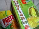 友達からタイのお土産をいただきました! タイ風ピリ辛サラダ”ラーブ”味のプリッツと、ドリアンチップスです。 プリッツはその名の通りピリッと辛めでスパイシーな味。とってもビールに合いそう! そして初めてお目にかかるドリアン物。どんなものかと… …中々にやっぱりファーストインパクトのスメルが独特で…ちょっとした勇気のいる一口目(笑) 味は甘いんですね。はじめの一歩こそ出しづらいですが連続で食べ続けると結構いけます!