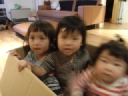 大きいダンボールにつっきーかしゅうきっきのちびっ子トリオが入ってはしゃいでます。