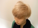 元々のブリーチした毛を更に2回ブリーチしてその色をほぼ白まで抜いた後に、うっすらピンクでかわいい風に(笑)